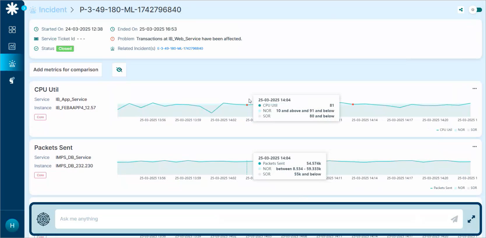 - Scroll down to the metrics section to view graphs of impacted metrics.