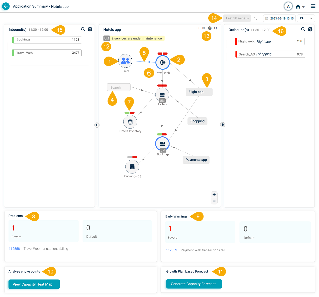 | 15 – Inbound(s) | Displays the transactions that hit the entry point services of an application. |