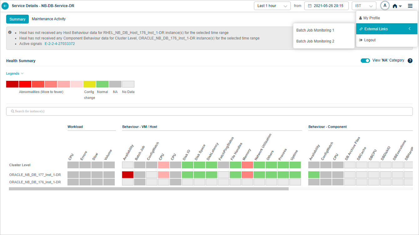icon. Select External Links. HEAL supports multiple external links. Multiple applications can use batch jobs. HEAL displays all the batch jobs in external links. Select a specific batch job application. Batch Job URL opens up in a new tab. In this tab, you can view the BJM application.