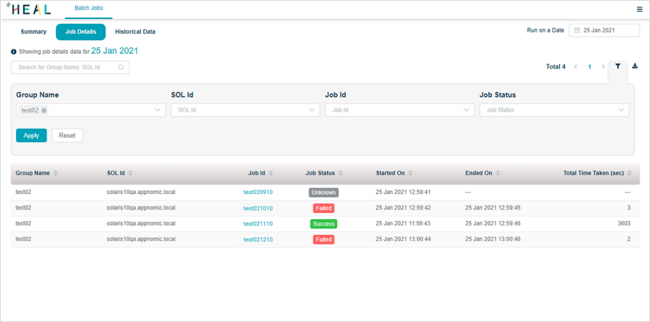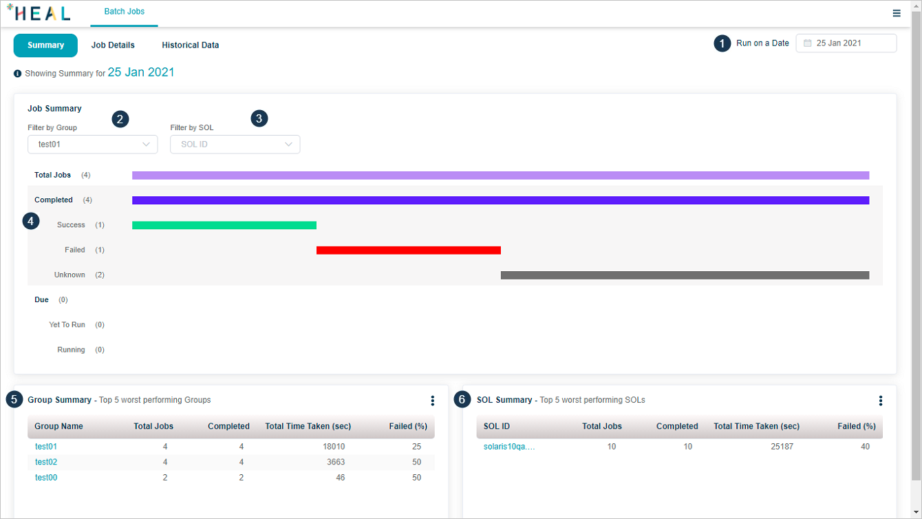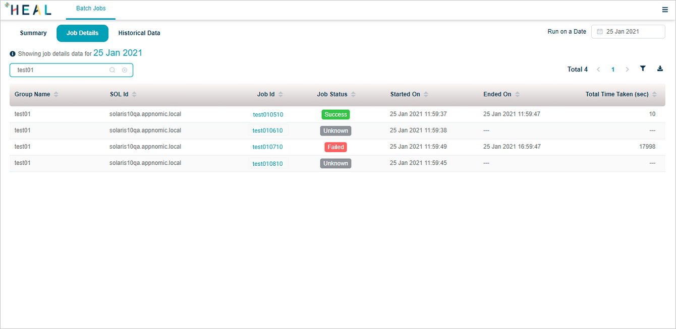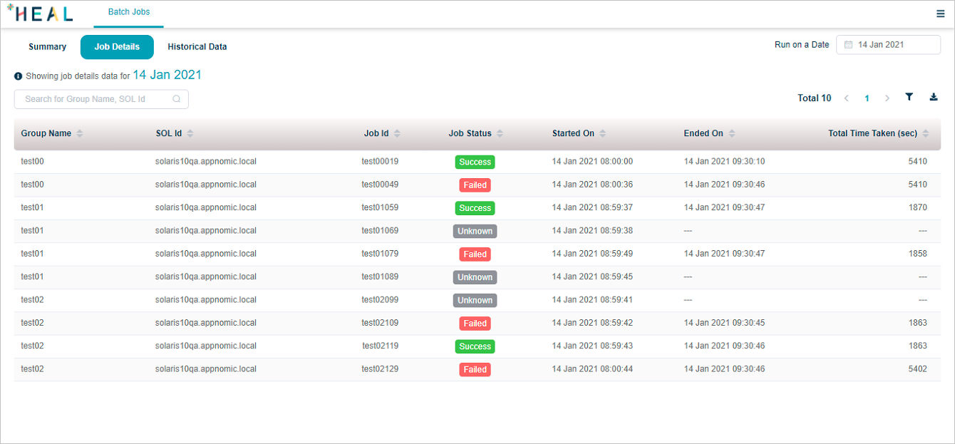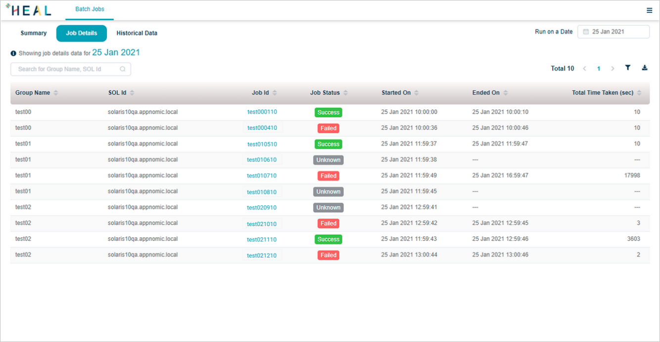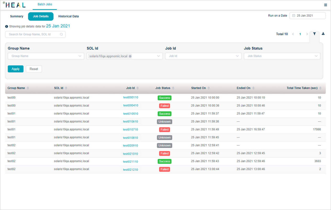 | 3 | You can select any of the available servers from Filter by SOL box to view jobs for that SOL Id. This displays the batch jobs per server. |