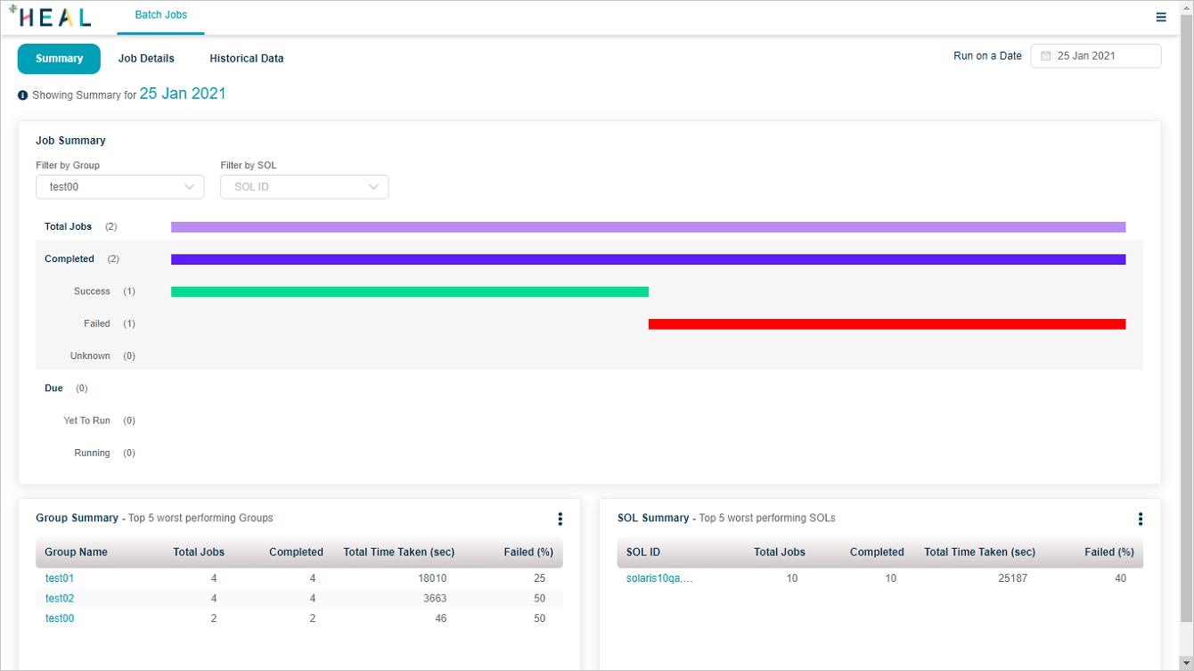 If you select a run on date other than present date in Job Summary screen, and then select Historical Data, date remains same. Otherwise, historical data displayed is for yesterday.