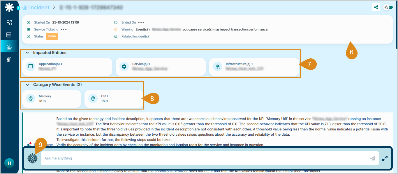 To view and analyze incidents generated by the AIOps engine, click an Incident ID from the Incident Details page.