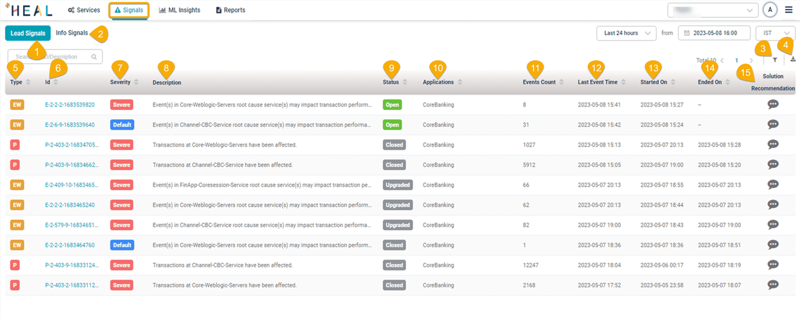 1 – Lead Signals Indicates whether the system is experiencing Early Warnings or Problems, providing users with real-time information on service behavior and transaction performance. Lead Signals