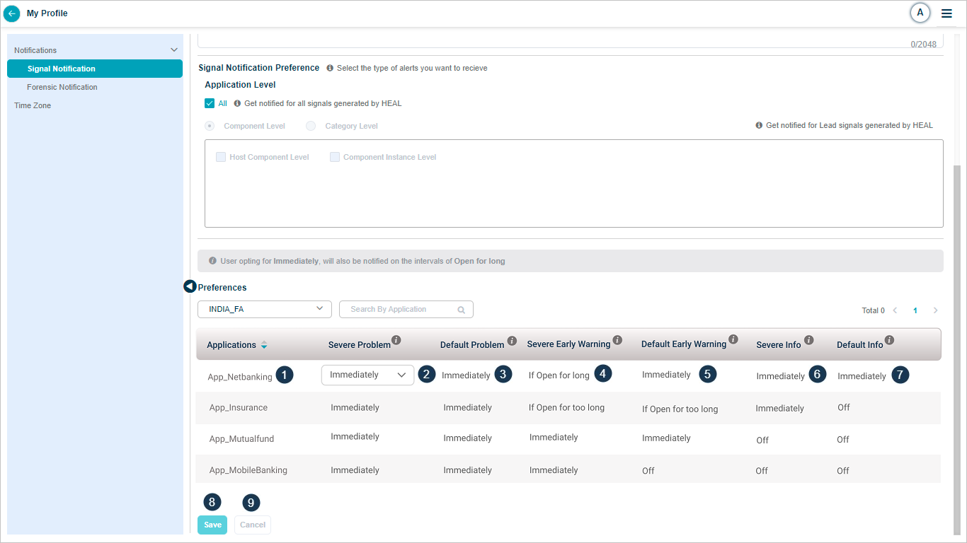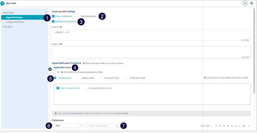 | 4 | You can have your own Signal Notification Preference. You can select the type of alert you want to receive. ‘All’ indicates, a user gets notified for all the Signals that HEAL generates. |