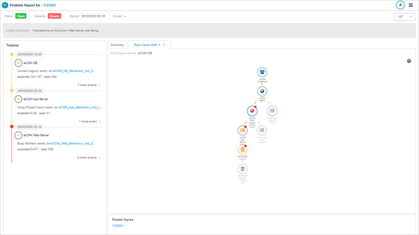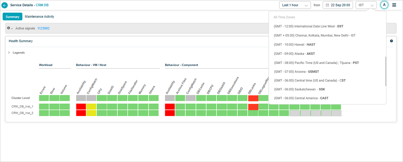 If the root cause service of a Warning has a custom time zone, then the screen automatically switches to this custom time zone.