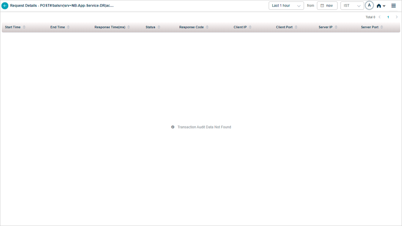 If there is no transactions audit data available for a request, HEAL displays following screen.