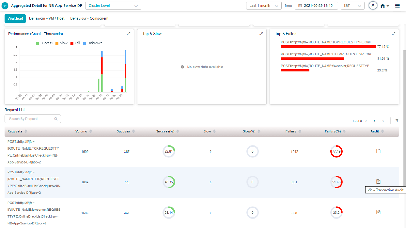 Hover on the icon in Audit column displays View Transaction Audit option.