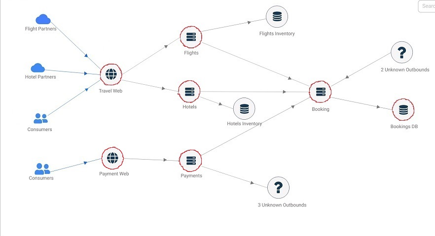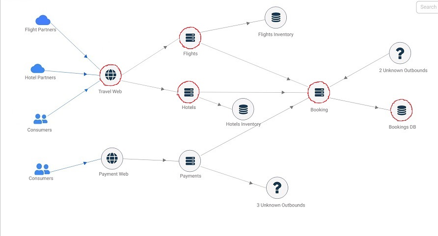 • Path 1: Bookings DB -> Booking -> Hotels: Flights -> Travel Web