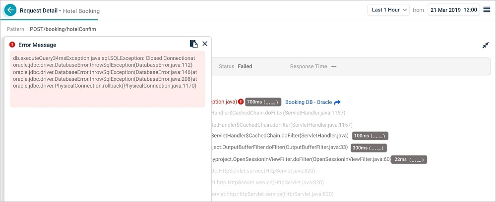 | 8 | Methods that have parameters captured are denoted appropriately. Response time (time spent in each of the monitored method) is displayed in milliseconds. Hover on the option to see the parameters for a monitored method. It displays the argument name and value. |