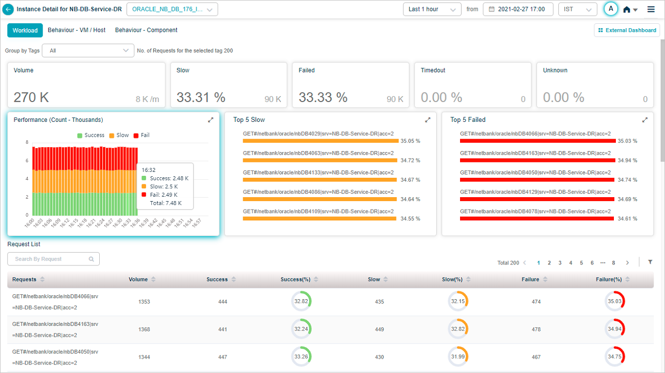 | 8 | It displays Top 5 slow requests. It helps in knowing the requests that are performing badly. It displays Top 5 requests in the descending order of the percentage of requests that have slowed down. |