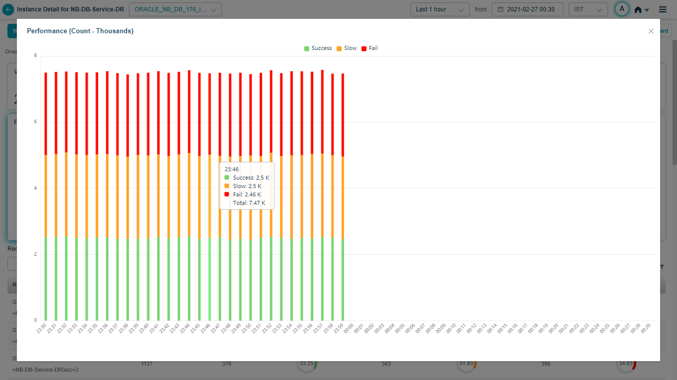 Hover over a data point in Performance pod to view details as displayed in following screen.