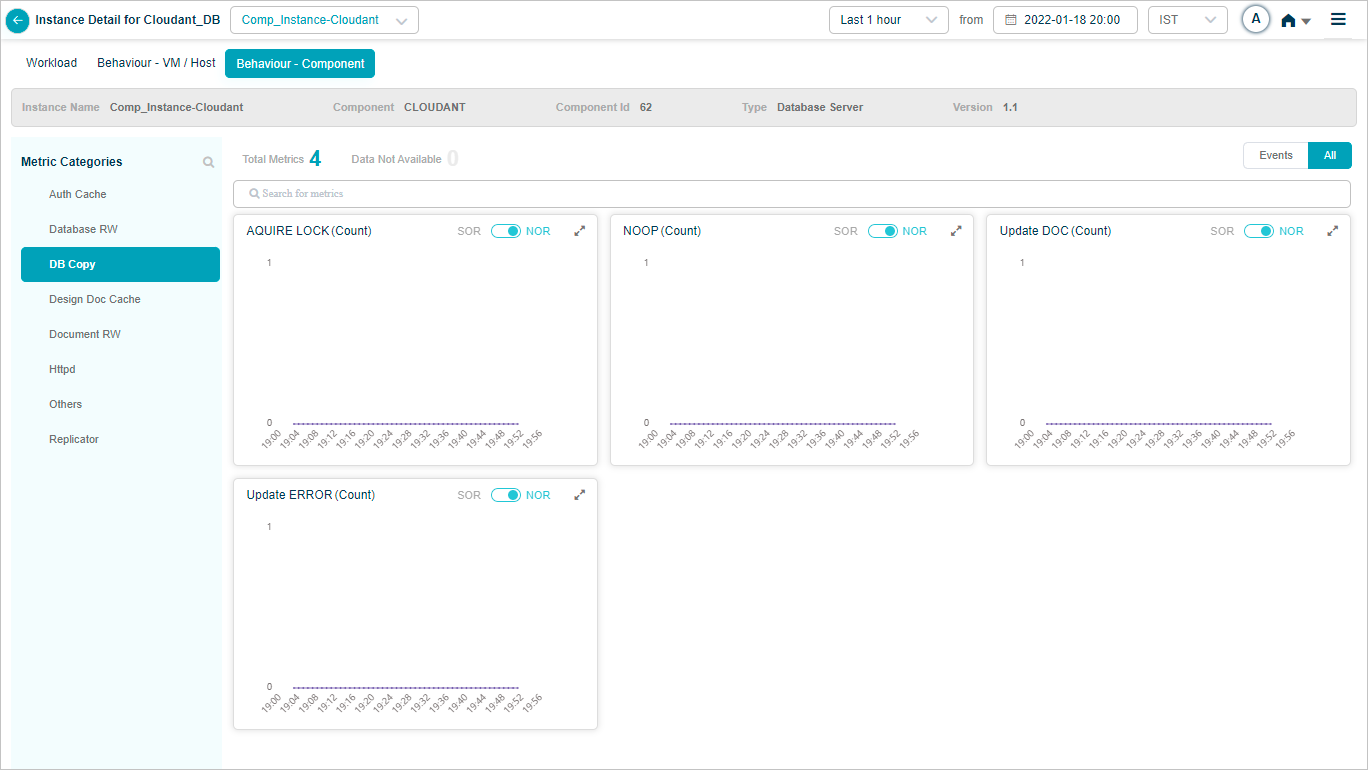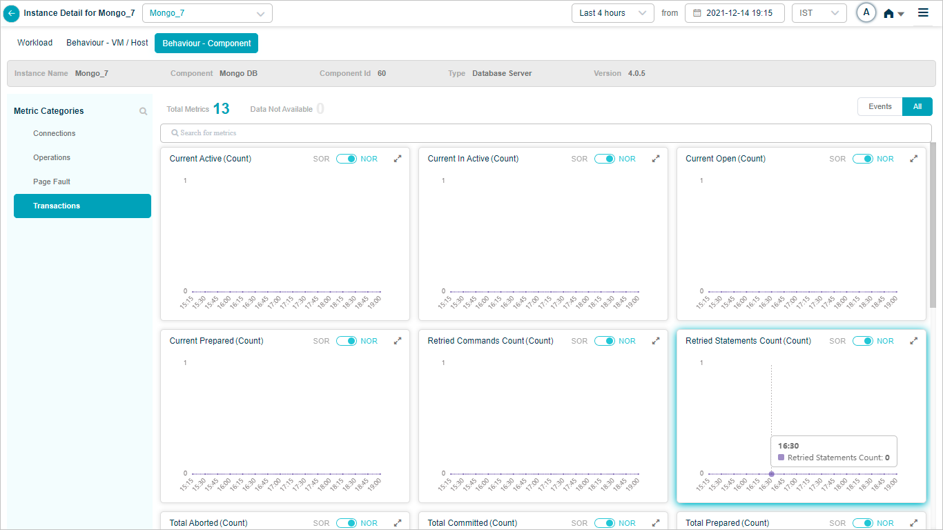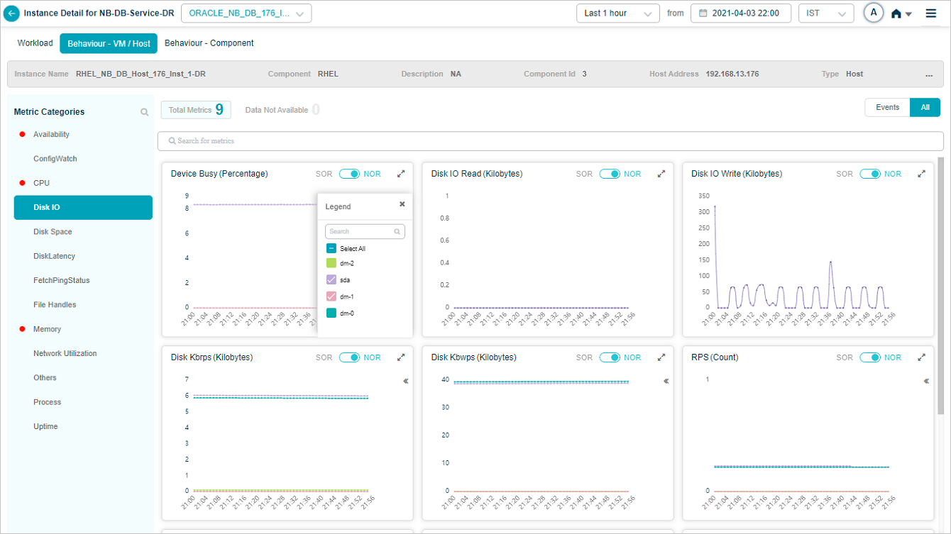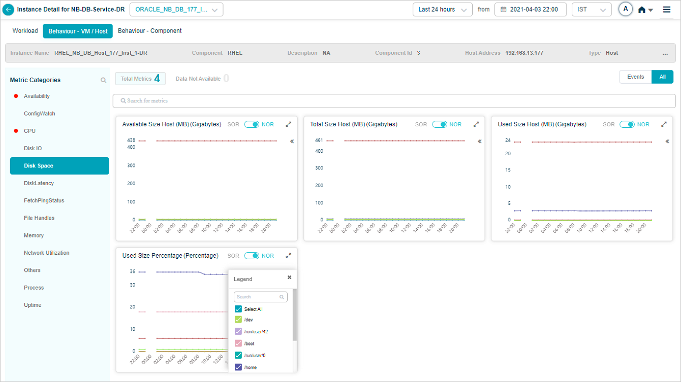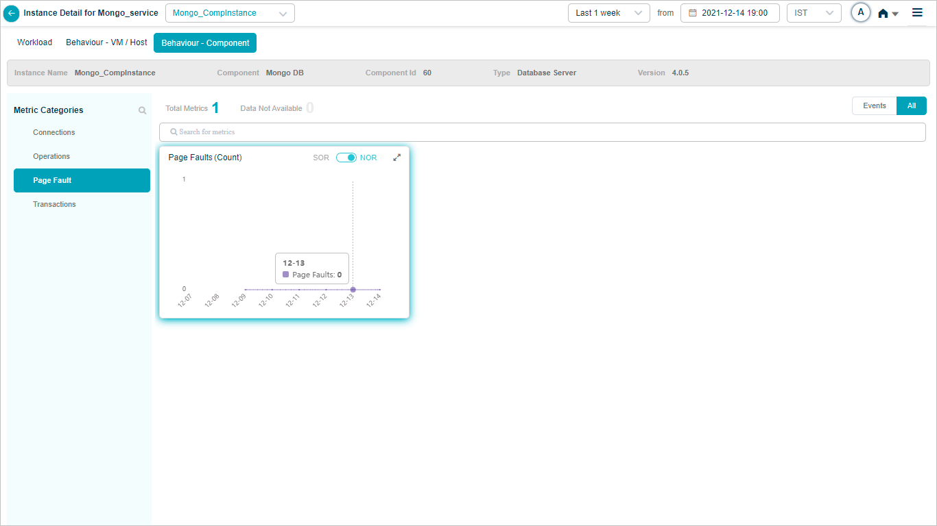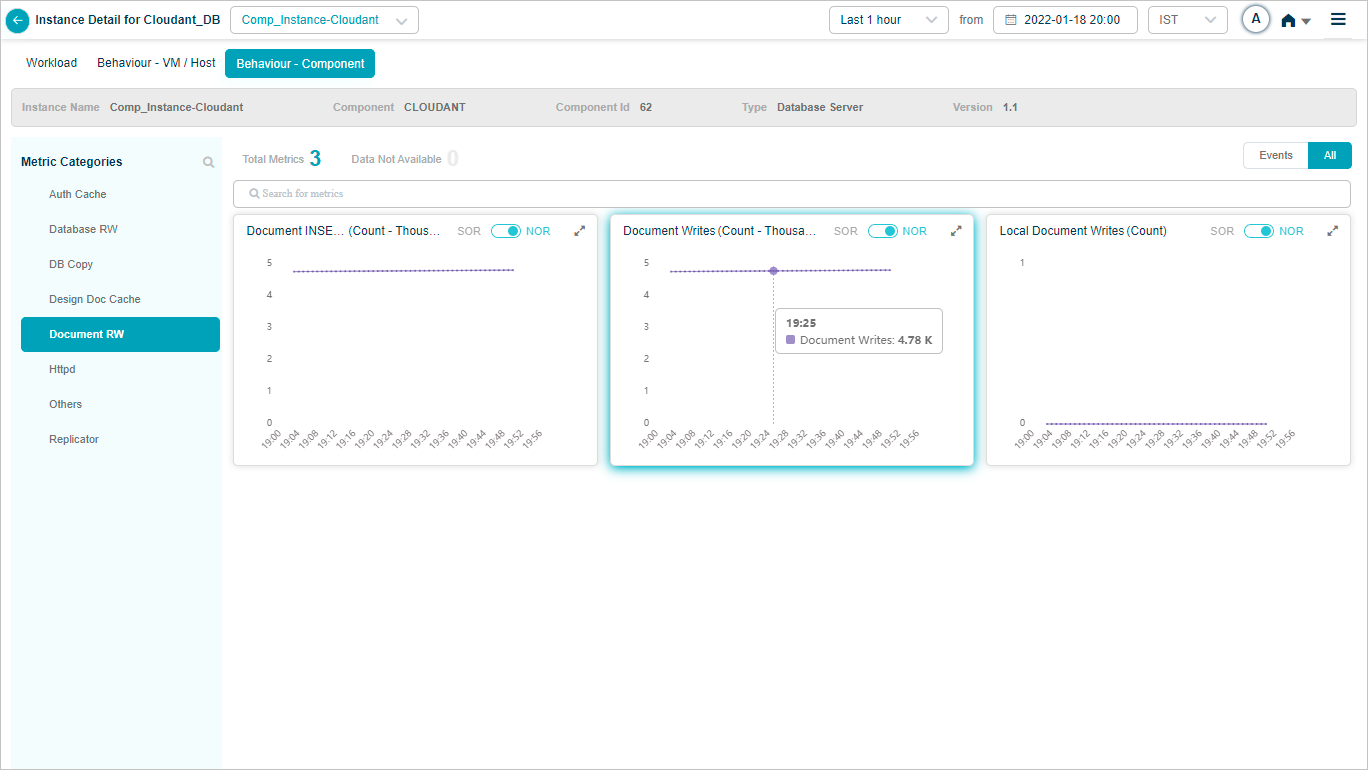 2 All service behavior-related metrics are available here, arranged by categories. A Red circle is displayed next to the category name if any event is generated for the category. The Amber circle is displayed next to Config Watch category if there are any configuration changes.
