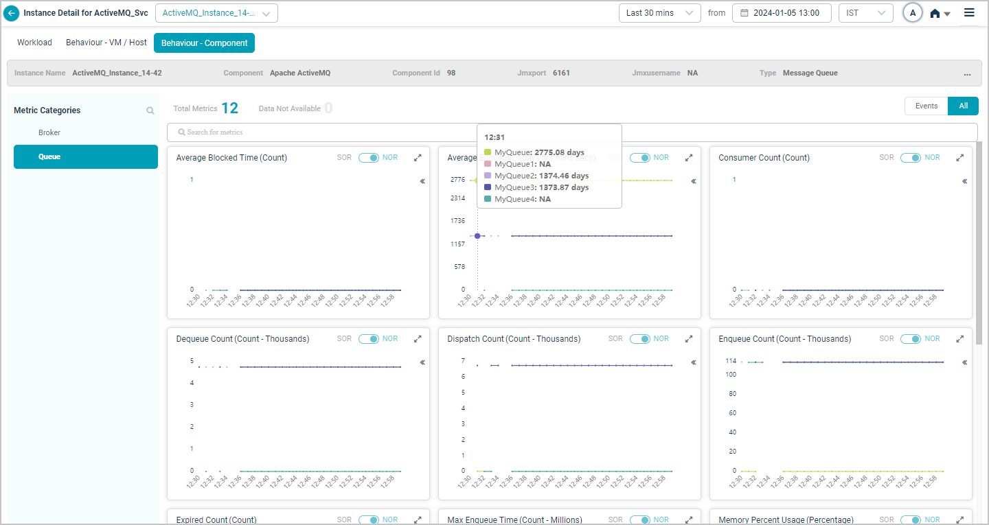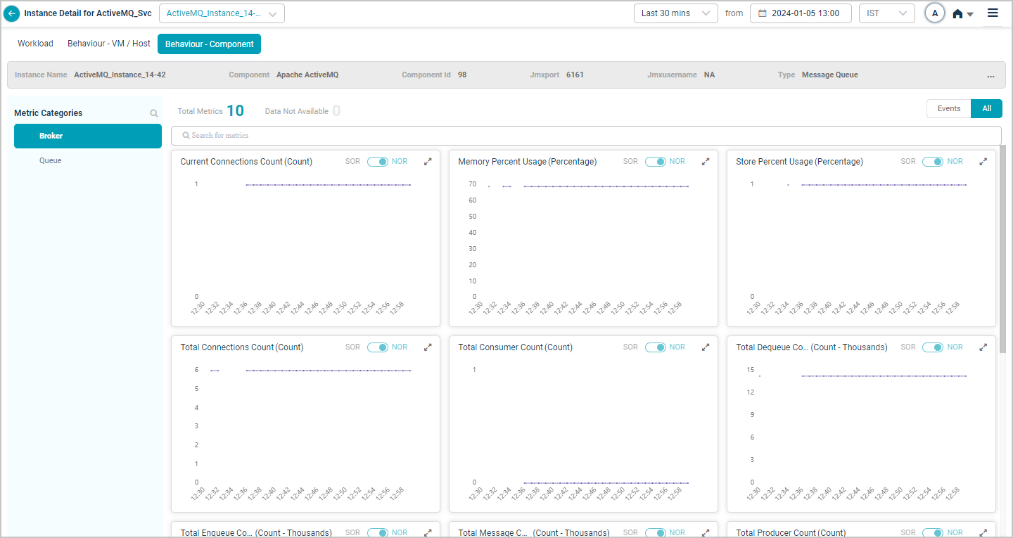 When you map Apache ActiveMQ component instances to Apache ActiveMQ component using Control Center, you can view Apache ActiveMQ KPIs in HEAL.