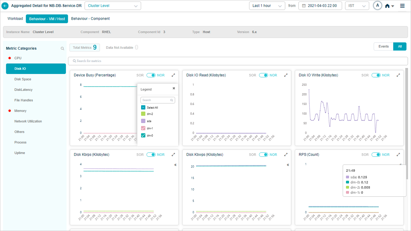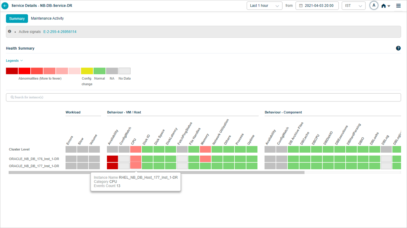 5 On hover on the blocks, the number of events are shown for the respective KPI categories at the instance or cluster level.