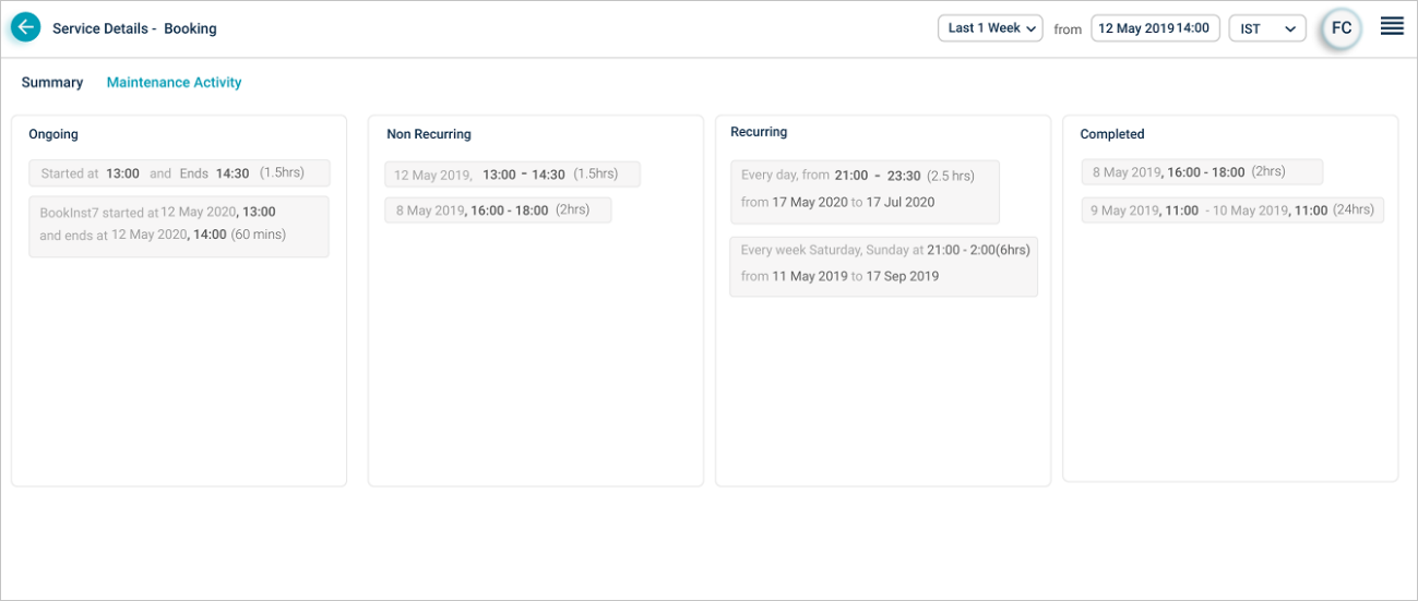 Service Maintenance Details