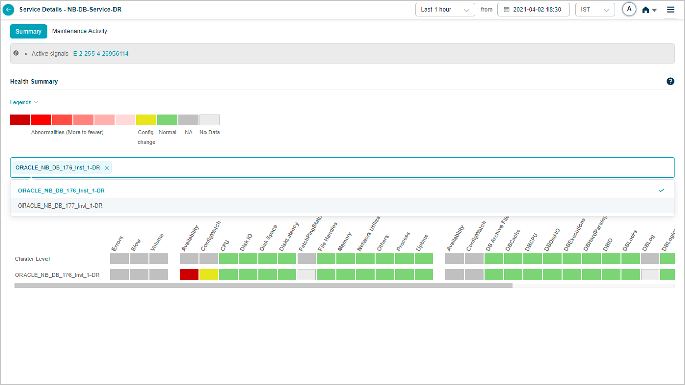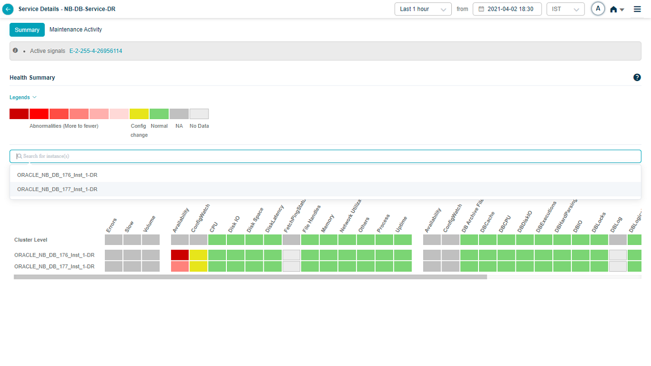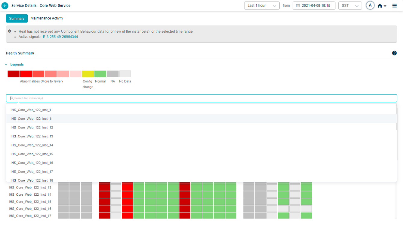 Drop box near the service name at the top of the screen contains all the instance names. You can choose a specific instance to navigate to the screen of the respective instance to view those details.